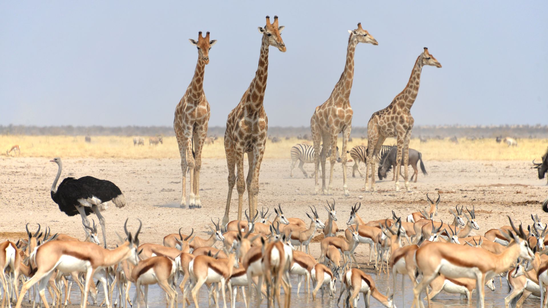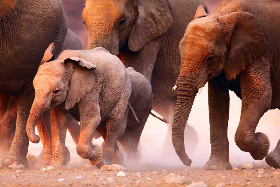 Nella stagione secca e nei primi mesi delle piogge è molto più facile avvistare le varie specie animali durante i safari, ad esempio nel Parco Nazionale dell’Etosha, in quanto nella stagione secca gli animali si concentrano in prossimità delle pozze d’acqua e la vegetazione è arida e spoglia; con l’avanzare della stagione delle piogge invece, per via della creazione di molte pozze d’acqua, gli animali sono distribuiti all’interno degli sconfinati parchi.